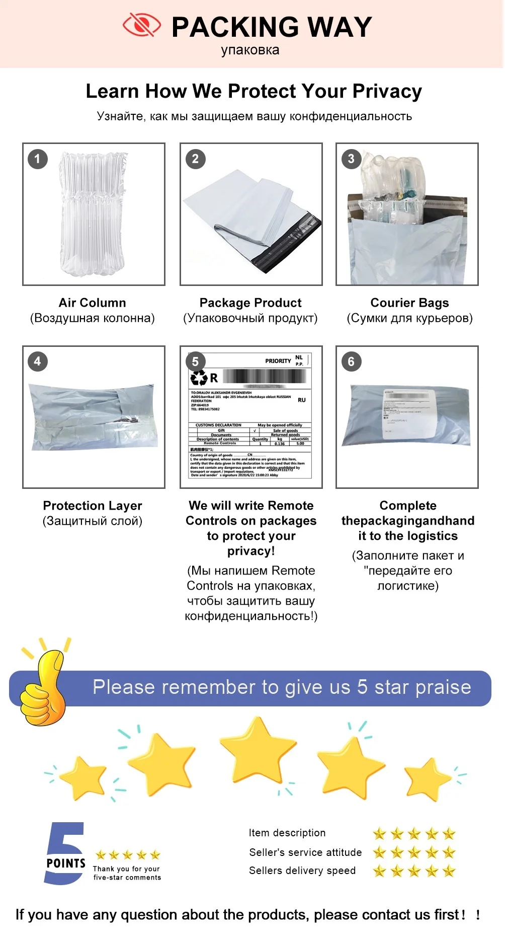 3.Please email to us befor leaving the negative feedback or opening any dispute on the site. Communication is the best way to solve the problems